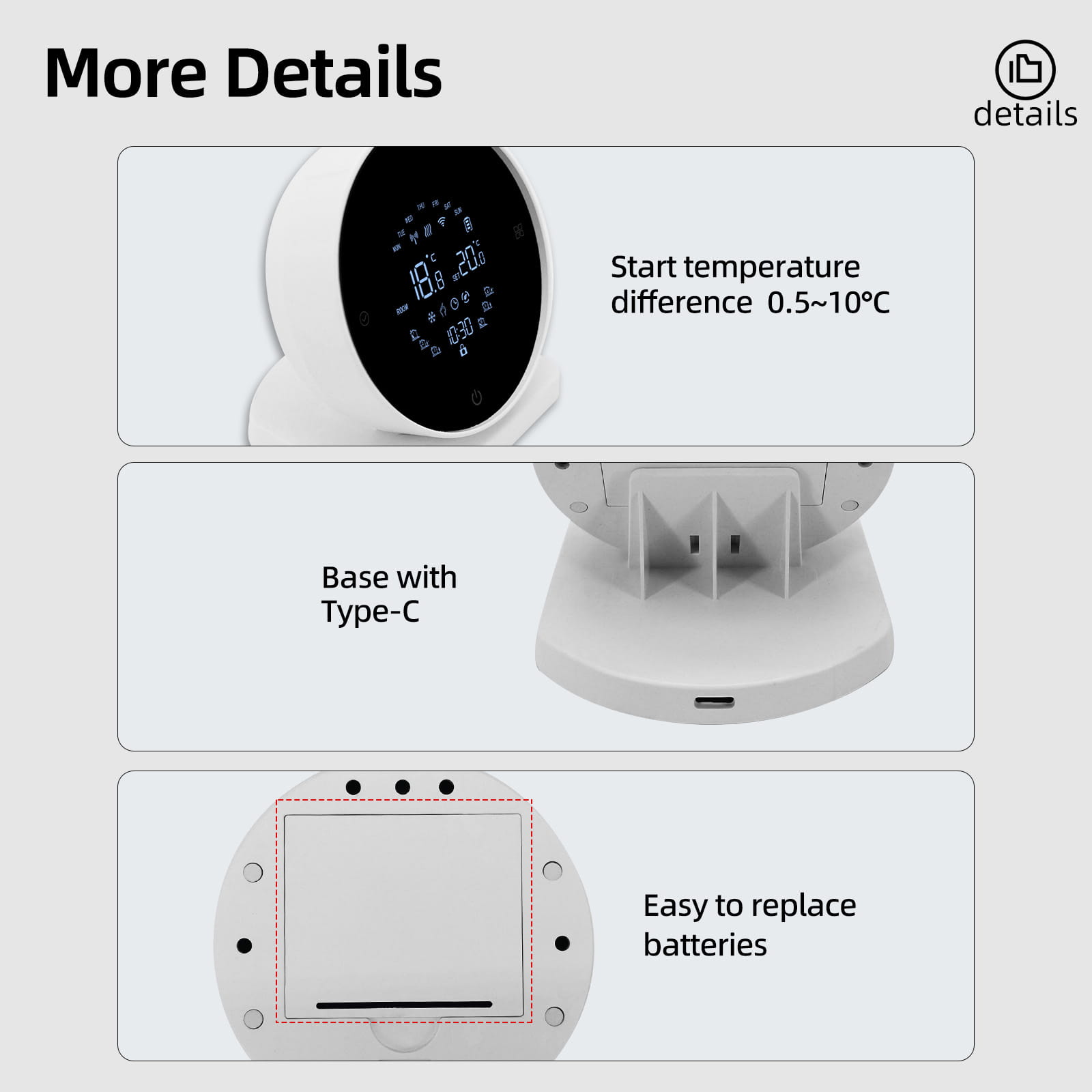 Беспроводной интеллектуальный температурный контроллер R7 — идеальный партнер для интеллектуальных систем отопления, подходящий для интеллектуальных систем водяного пола, электрического отопления и систем отопления с газовым бойлером. Он обладает чрезвычайно мощными функциями, оснащен полноэкранным ЖК-дисплеем и наглядно отображает различные типы информации. Поддерживает программирование временных интервалов, интеллектуально регулирует температуру в соответствии с вашими привычками образа жизни, эффективно экономя потребление энергии. Точный контроль температуры и простая установка создают для вас постоянно комфортную температурную среду, принося приятные ощущения дома.
